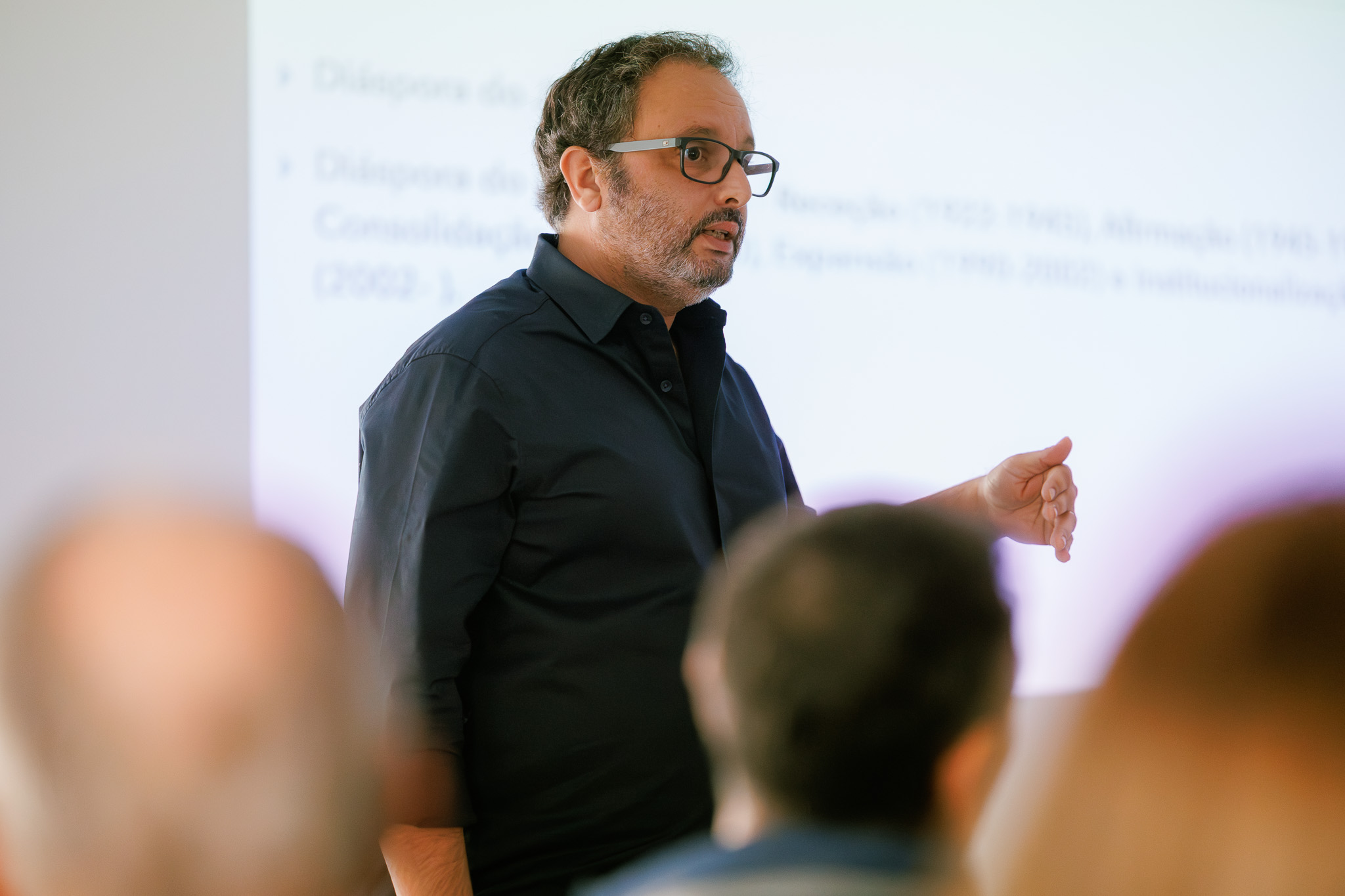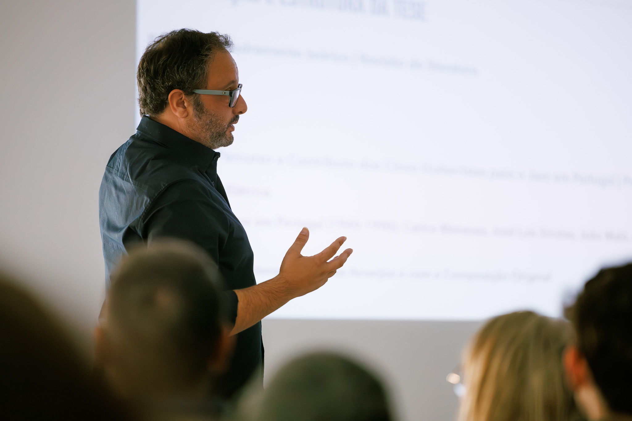 In this session, Nuno Costa presents his work ‘The Jazz Guitar in Portugal (1940–1990)’ in conversation with guitarist Luís Lapa, a native of Viseu. Over the course of an hour, they share stories, contexts and protagonists that helped consolidate the presence of jazz guitar in the country, exploring the aesthetic, technical and cultural evolution of this journey.
